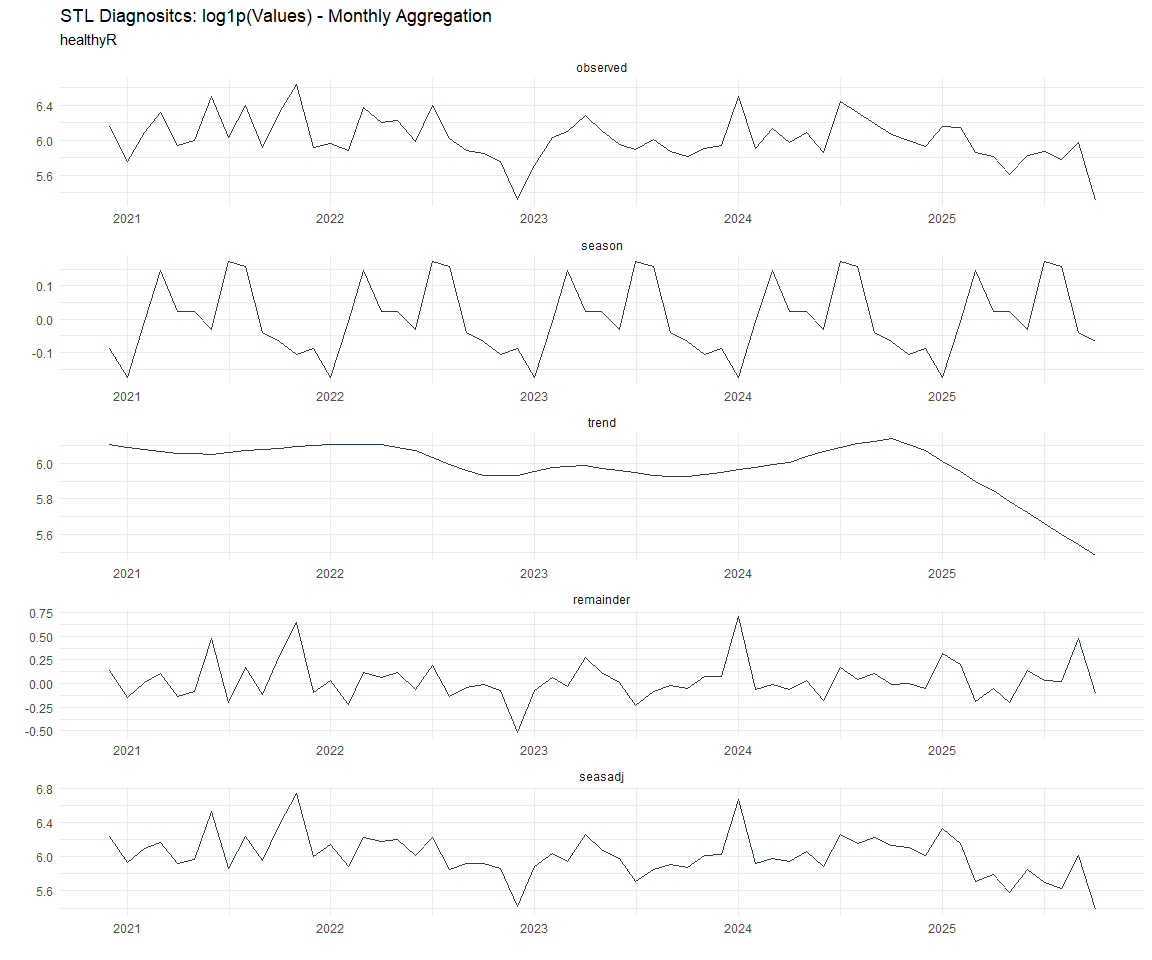 healthyR | 1 | ARIMA | Test | 0.5319473 | 146.89514 | 0.7896331 | 173.0737 | 0.6663800 | 0.0085956 |