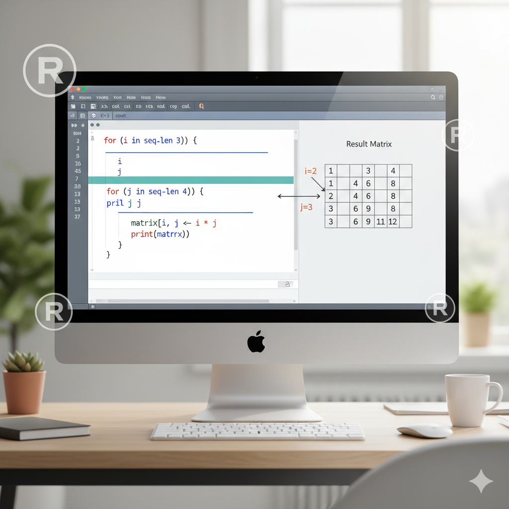 Programming, Nested For Loop R, R Nested Loop, For Loop in R, R Loop Examples, R Programming Loops, R matrix loop, R loop optimization, R data frame iteration, R loop performance, R loop syntax, How to create a nested for loop in R with examples, Best practices for nested for loops in R programming, R nested for loop matrix manipulation tutorial, Efficient ways to use nested loops in R for data analysis, Step-by-step guide to nested for loops in R for beginners